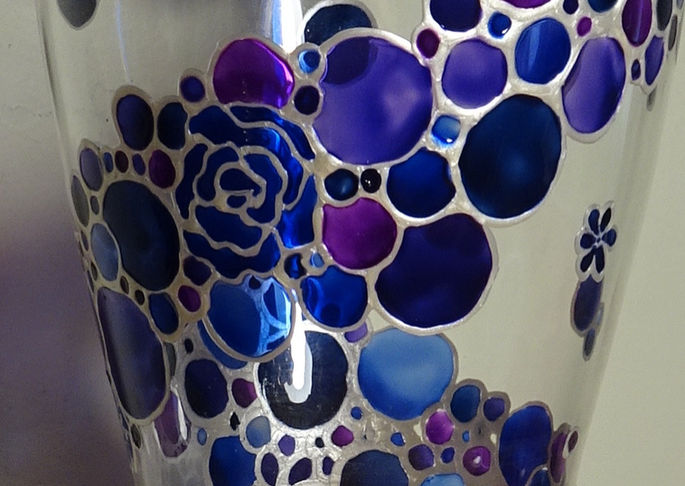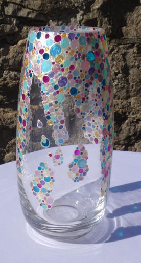 Glasses and vases have been upcycled from discarded and unwanted items. Again, I love coming up with new designs, and I also love the process of painting them into the finished article, I spend hours in a little world of my own, trying to produce perfection.